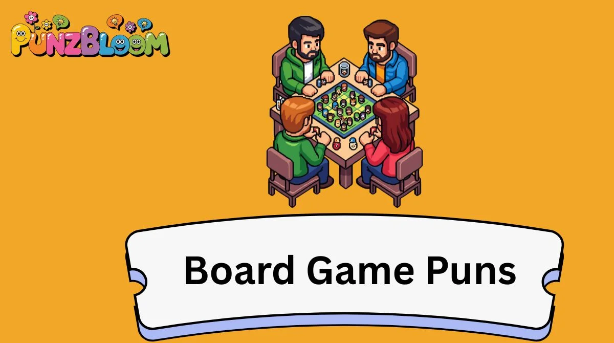 Board game puns are funny or clever jokes that use gaming words, rules, and themes to create humor.